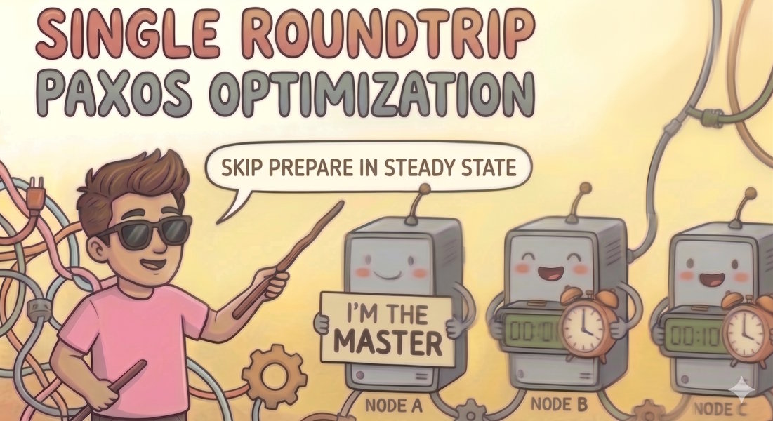 The previous article ended exactly there: once you have a stable master, it is unnecessary for every new log slot to keep paying for both Paxos phases. The master is already the only node serving writes. In the steady state, for new Paxos rounds, we should be able to skip the prepare step and go directly to the propose step. This article makes that optimization, but in the smallest possible way, by adding one boolean flag: skip_prepare, which is set when the lease is gained or lost, and passed to the Paxos proposer. The code is on Github.